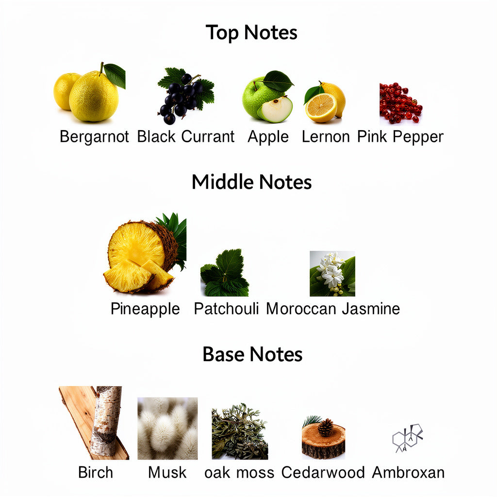 Victory Perfume is a bold, modern fragrance built around a vibrant fruity–woody accord. This distinctive men’s perfume opens with a bright burst of juicy pineapple and citrus, giving an immediate sense of energy and confidence. As the perfume settles, a smoky touch of woods and subtle florals adds depth and character, before drying down into a smooth blend of musk, oakmoss, and a hint of vanilla that lingers on the skin with elegance. Designed as a statement-making luxury perfume, Victory is perfect for those who want to feel powerful, charismatic, and unforgettable in any setting, from day to night.